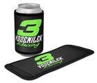 Neoprene wrap can hugger rubber beverage insulator. Wraps completely around can or bottle and fastens with sewn in Velcro.